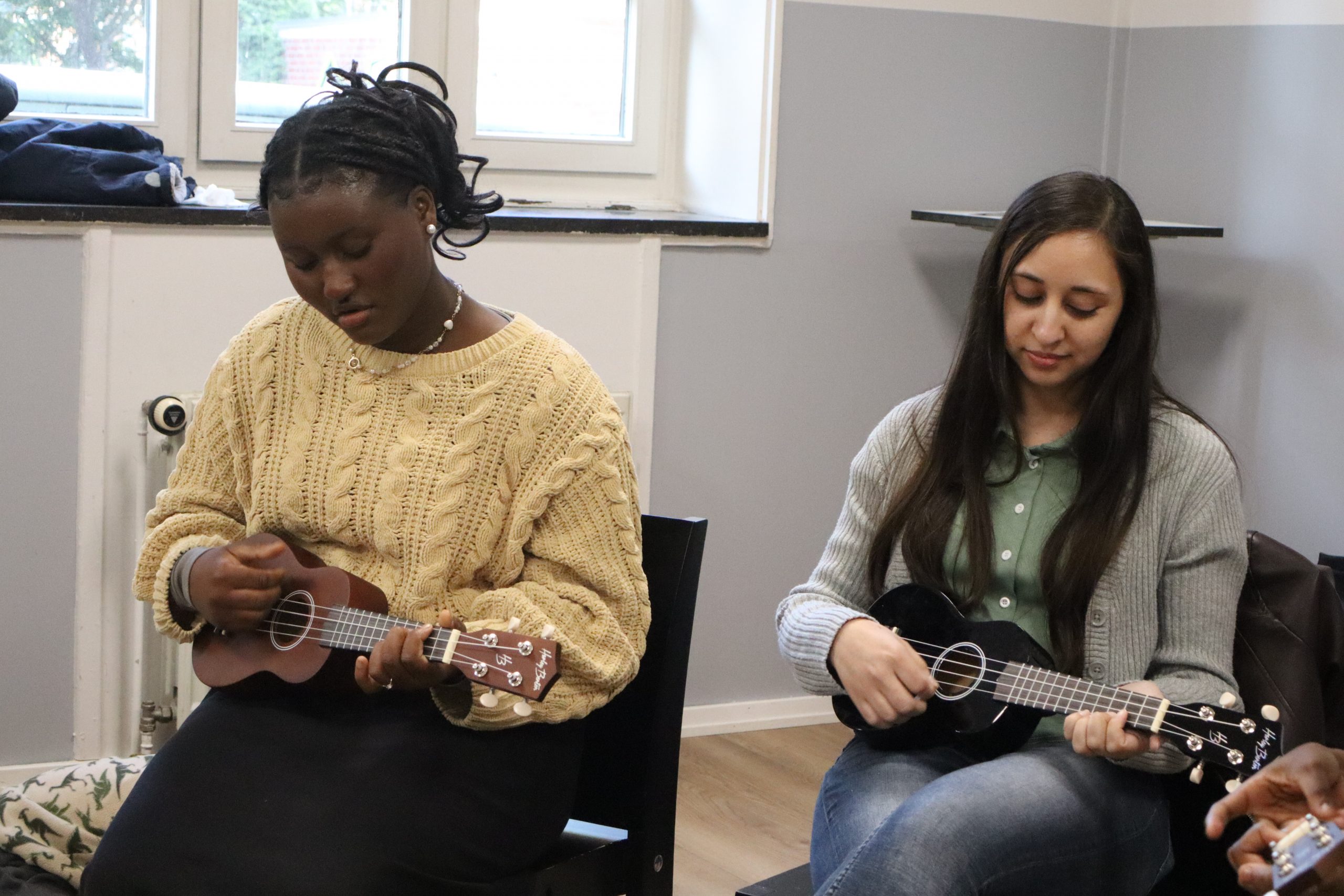 Im Rahmen von Malworkshops, Salsa-Sessions sowie Handpan- und Gitarrenworkshops konnten die Frauen unterschiedliche Ausdrucksformen kennenlernen und ausprobieren. Einige Teilnehmerinnen erhielten zudem Instrumente, die sie mit nach Hause nehmen konnten, um auch außerhalb der Workshops weiter zu üben und ihre neu erlernten kreativen Fähigkeiten nachhaltig in ihren Alltag zu integrieren.
