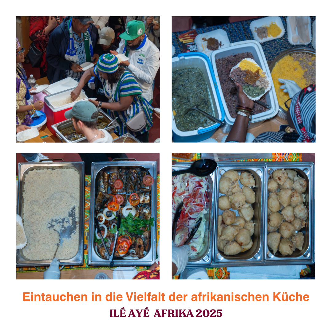 Am 07.06.2025 fand das Ilé Ayé Afrika Event bei Afrotopia statt. LESSAN e.V. hatte dieses, mit Unterstützung der Hamburger Hilfsspende, geplant und umgesetzt. Ergebnis dieser Zusammenarbeit, war ein farben und lebensfrohes Event, mit Livemusik und einem riesigen Buffet, gestellt von den anwesenden Communitys. Die Besucher*innen hatten die Möglichkeit mit den Communitys in Kontakt zu treten, sich auszutauschen und zu vernetzen. Mit der faszinierenden Musik von der Angelina Akpovo Band, der einzigartigen Kunst von 8 Communitys und dem himmlischen Essen, wurde das Ilé Ayé Afrika Event zu einem vollen Erfolg
