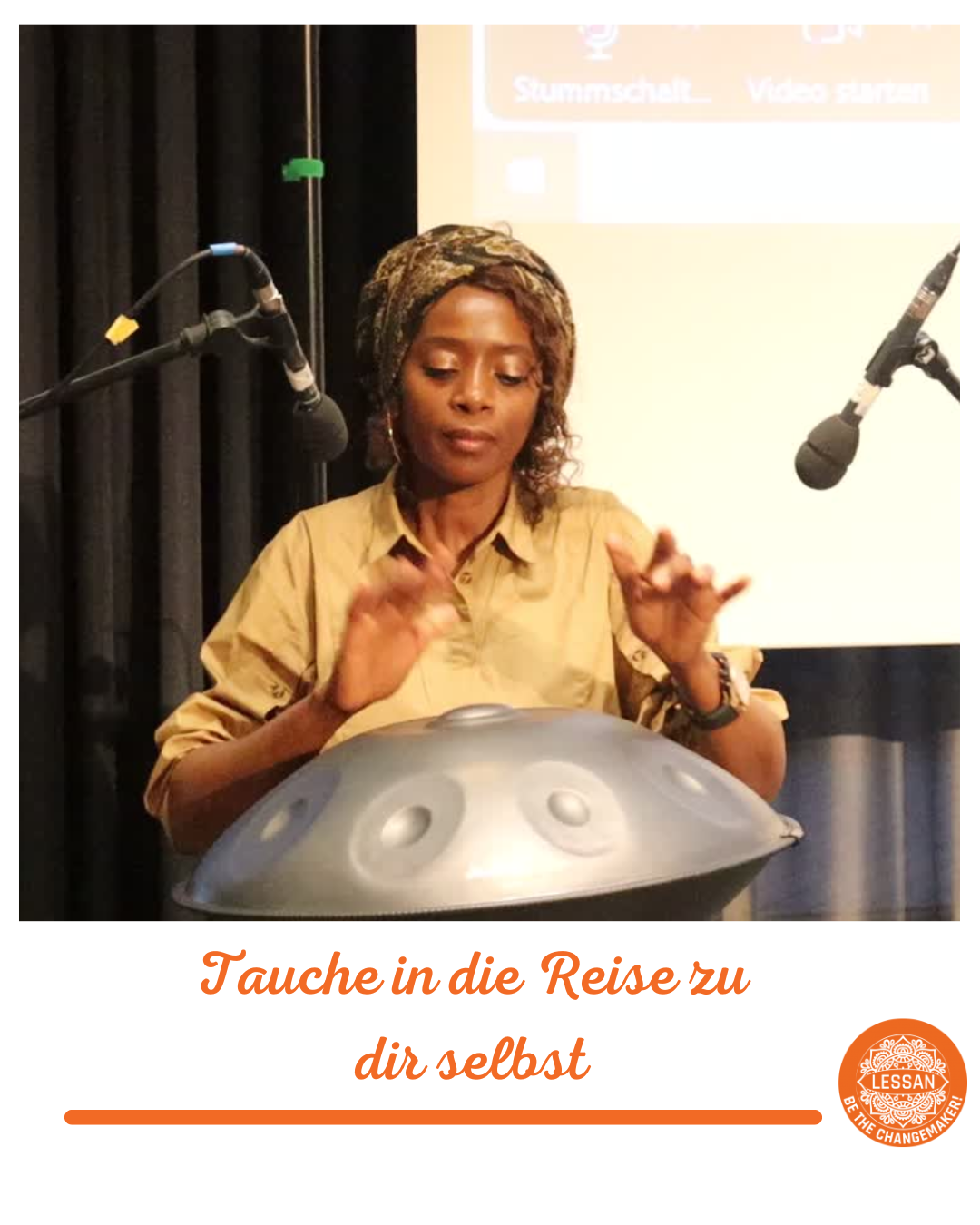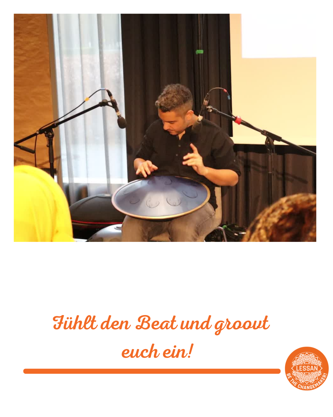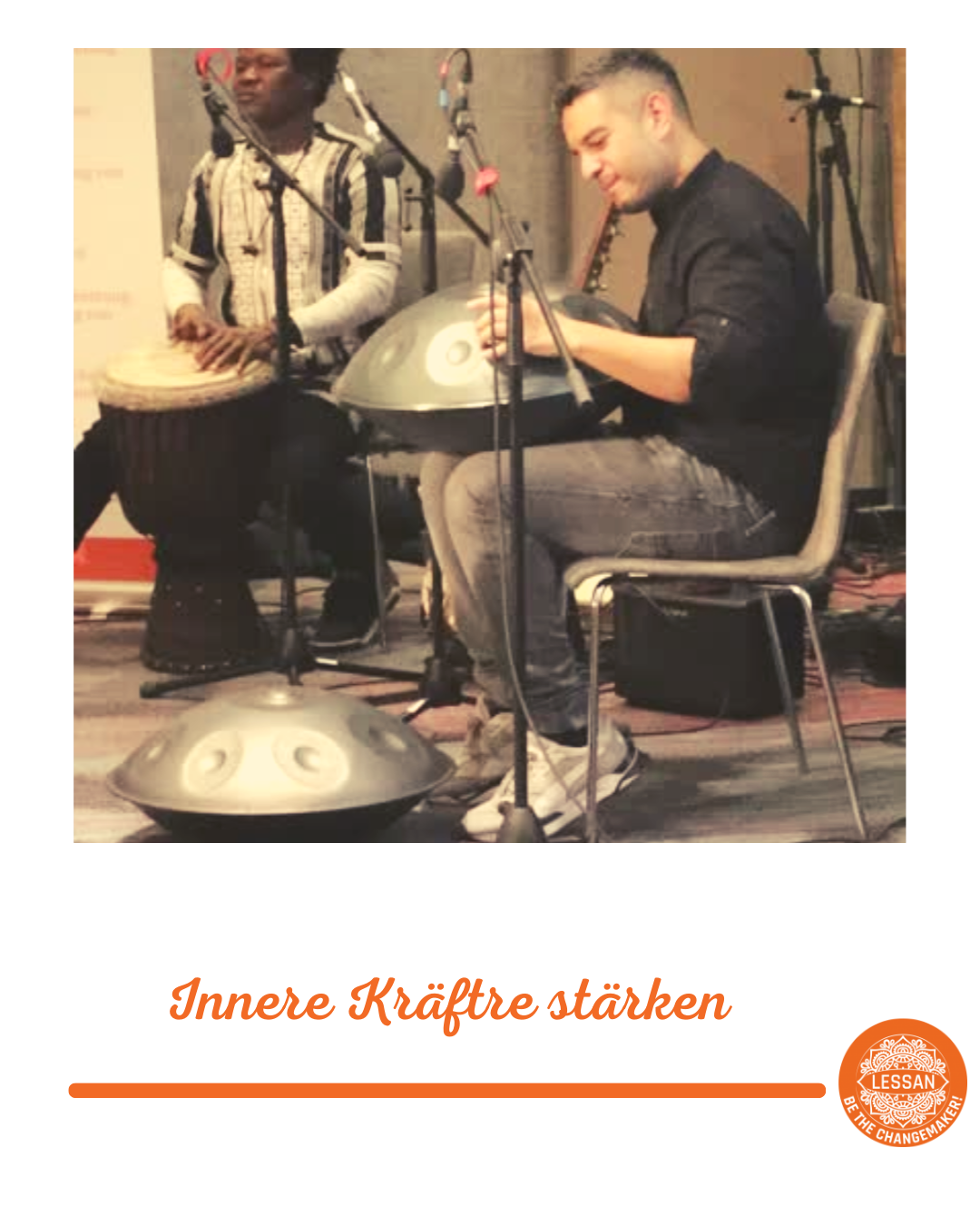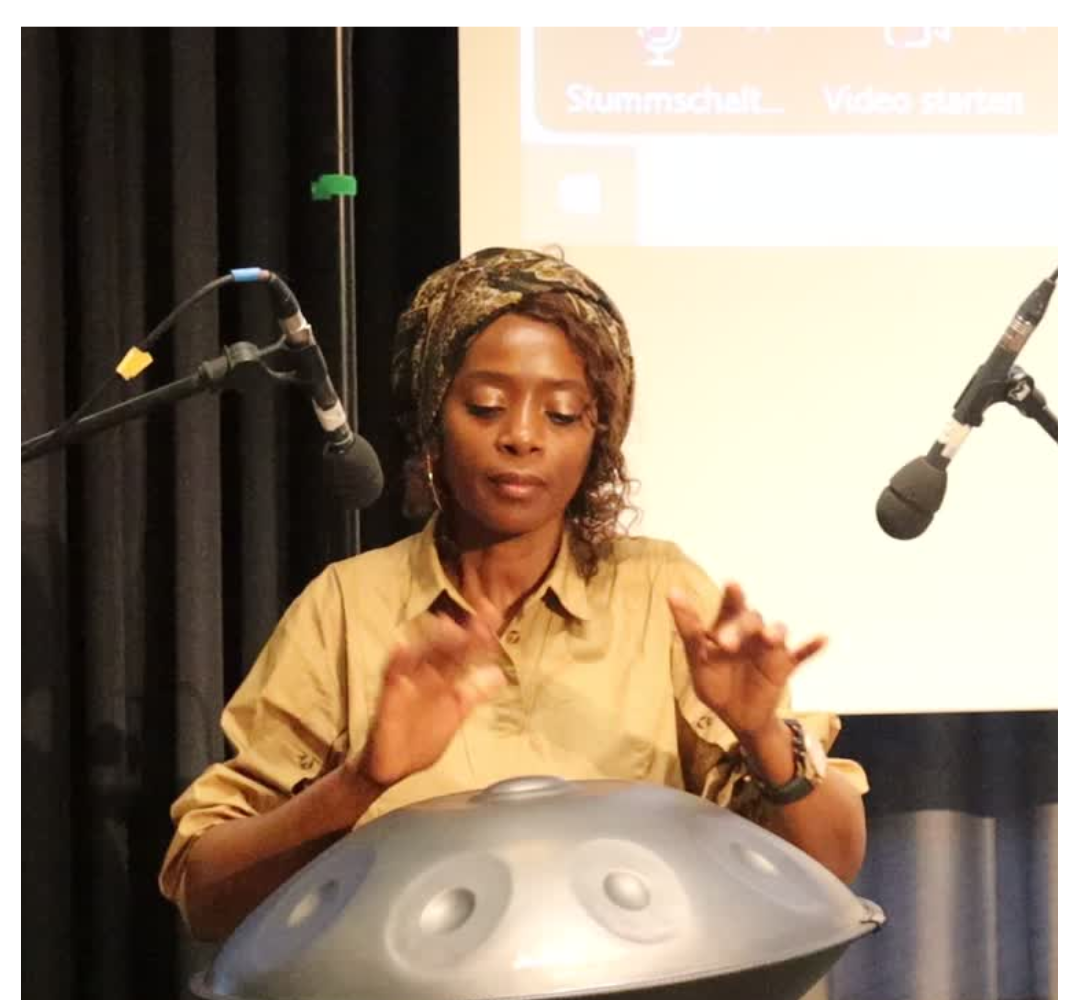Ein musikalischer Beitrag von Florian Bronck auf der Handpan brachte eine entspannte Atmosphäre. Danach wurde das Projekt genauer vorgestellt, besonders die transkulturellen Kunst-Workshops, die betroffenen Frauen und Mädchen geholfen haben und positive Veränderungen bewirken konnten.