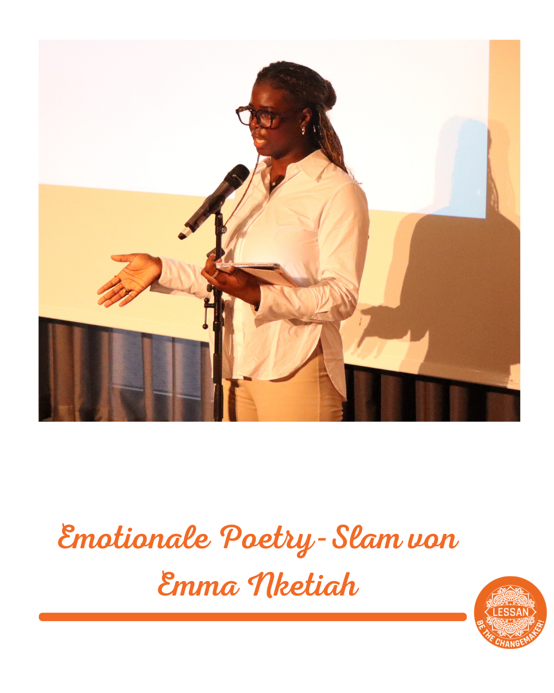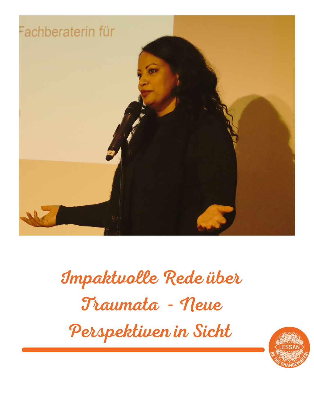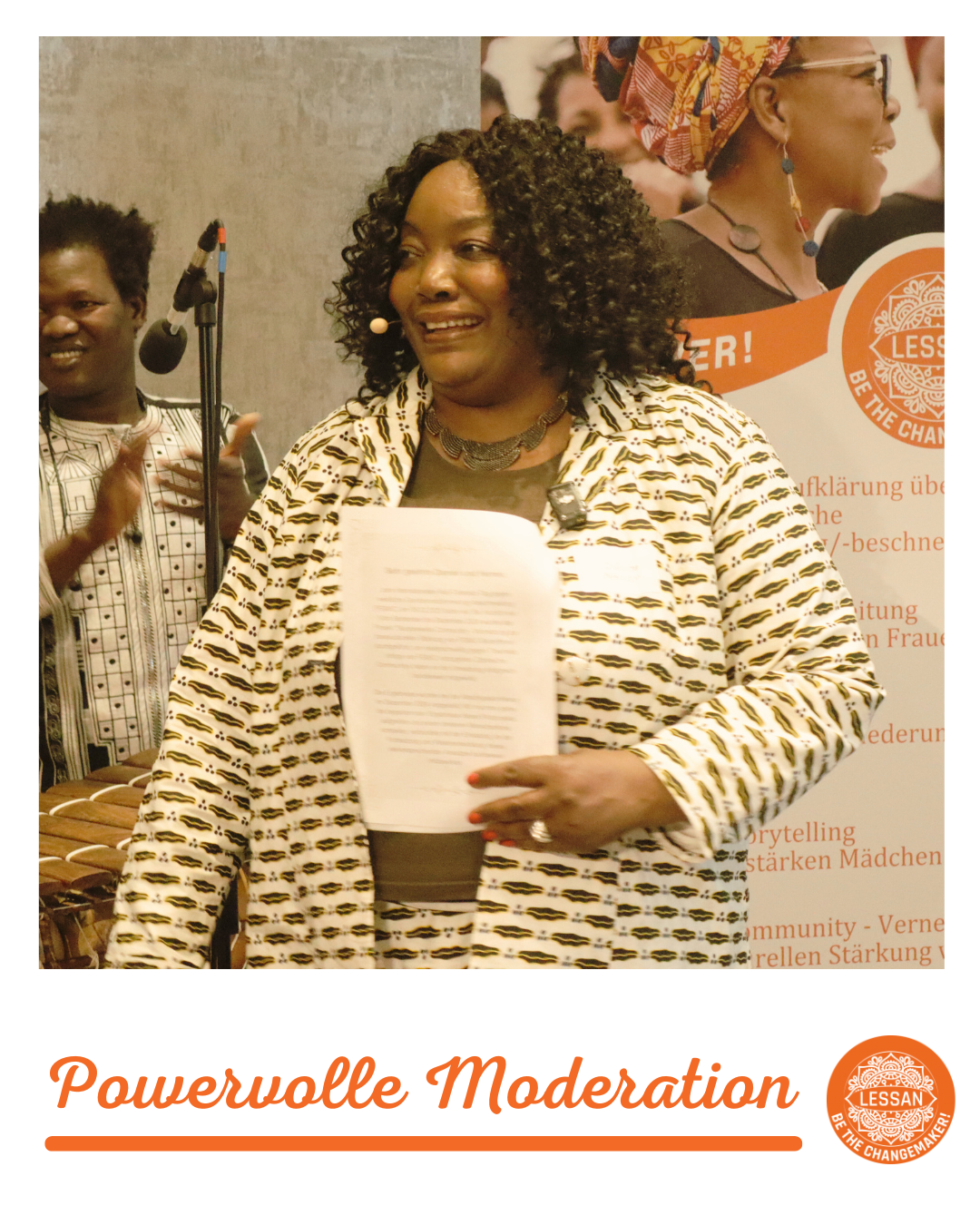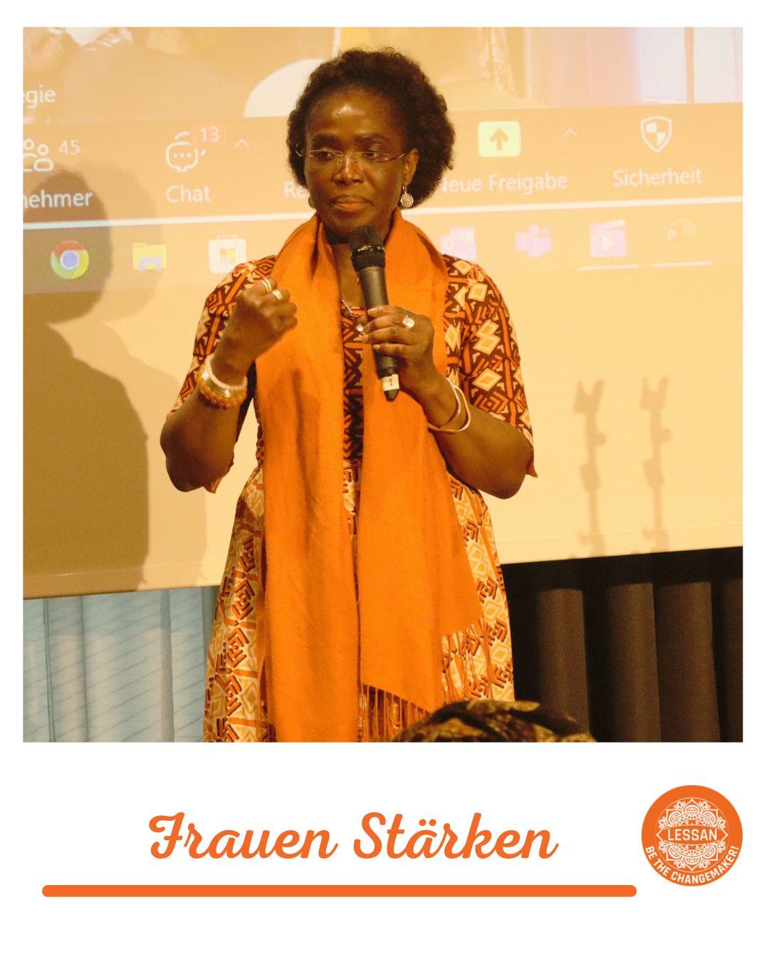Die Eröffnung erfolgte durch Dr. Gwladys Awo, die Vorstandsvorsitzende von LESSAN e.V. ist. In ihrer Rede stellte sie das Projekt vor und erklärte den Zusammenhang mit den Ergebnissen, die im Rahmen der Konferenz präsentiert wurden. Besonders betonte sie, wie wichtig transkulturelle Methoden für die Heilung von Traumata sind und würdigte das Engagement zahlreicher Communitys, die einen wesentlichen Beitrag zum Erfolg des Projekts geleistet haben. Im Anschluss sprach Anne Dahlbüdding vom Bundesministerium für Familie, Senioren, Frauen und Jugend, welches das Projekt finanziell unterstützt hat, und teilte ihre Perspektive dazu.